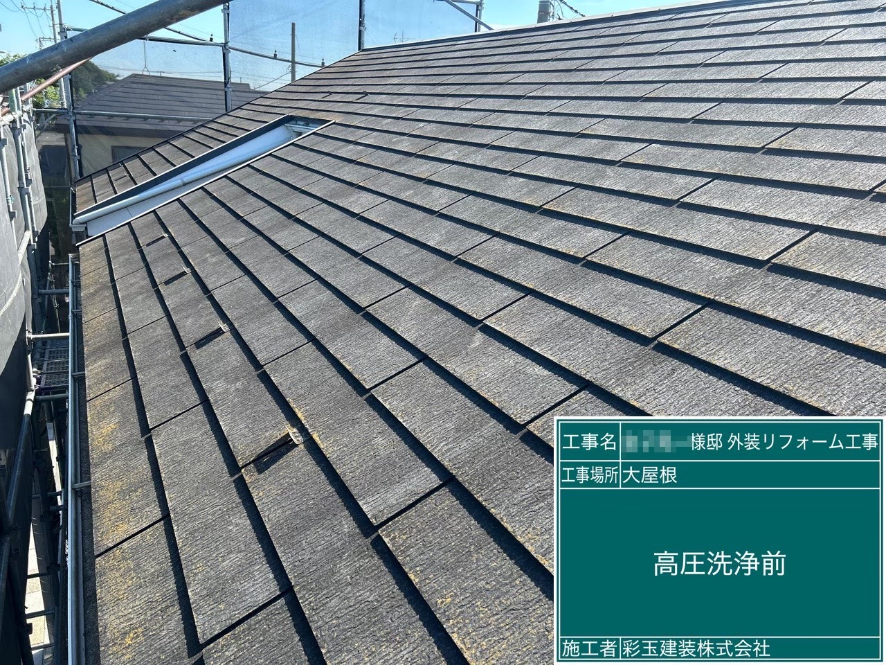 屋根・外壁ともに、コケやカビによる汚染、塗膜の劣化が進み、